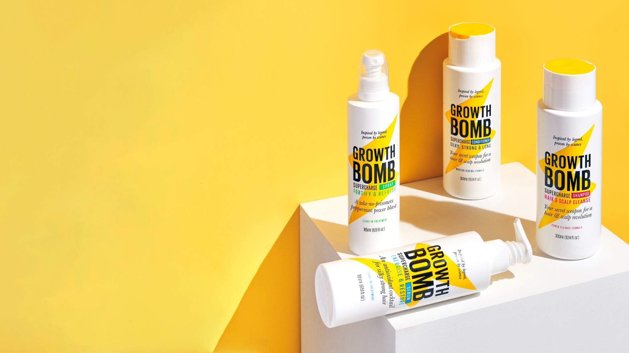 *based on a 5 week consumer study with 35 participants using the Growth Bomb Supercharge Shampoo