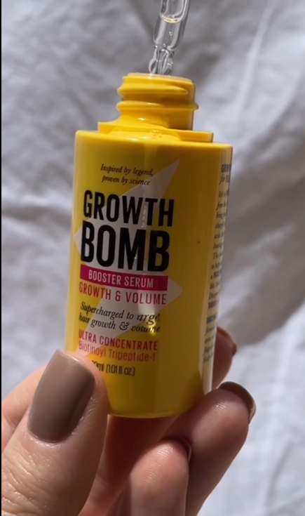 Growth Bomb Booster Serum is a powerful scalp treatment designed to promote fuller, stronger, and thicker hair. Infused with ultra-concentrated Biotinoyl Tripeptide-1 and rich in amino acids, it supports strength, protects against breakage, and adds volume to your hair.