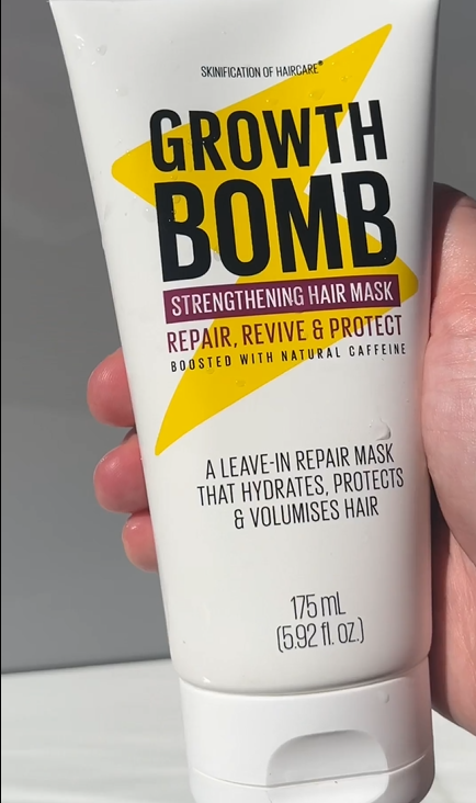 Growth Bomb Strengthening Hair Mask is a hair treatment formulated to repair, revive, and protect your hair. Boosted with natural caffeine from the Yerba Maté Leaf and rich in antioxidants, it's designed to support a healthy scalp and hair while delivering deep hydration to dry and damaged strands.