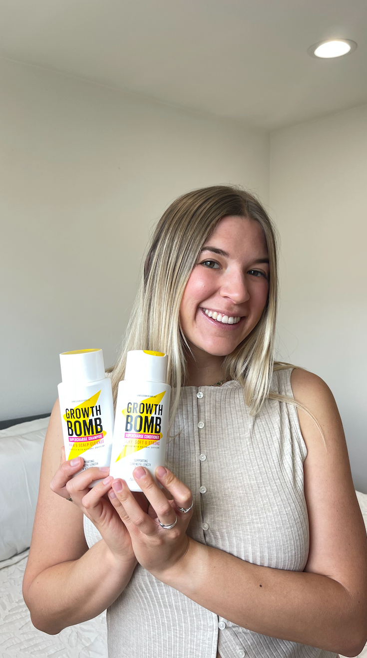 Guys I seriously need to let you know that your shampoo, conditioner and serum combo have SAVED MY HAIR, honestly. After a few weeks my hair is so shiny, healthy, and growing so quickly. I ran out of Growth Bomb and just picked up a cheap shampoo on the fly and immediately noticed my scalp was dry, and my hair was dull in comparison to your product, so I went out and immediately repurchased!!!