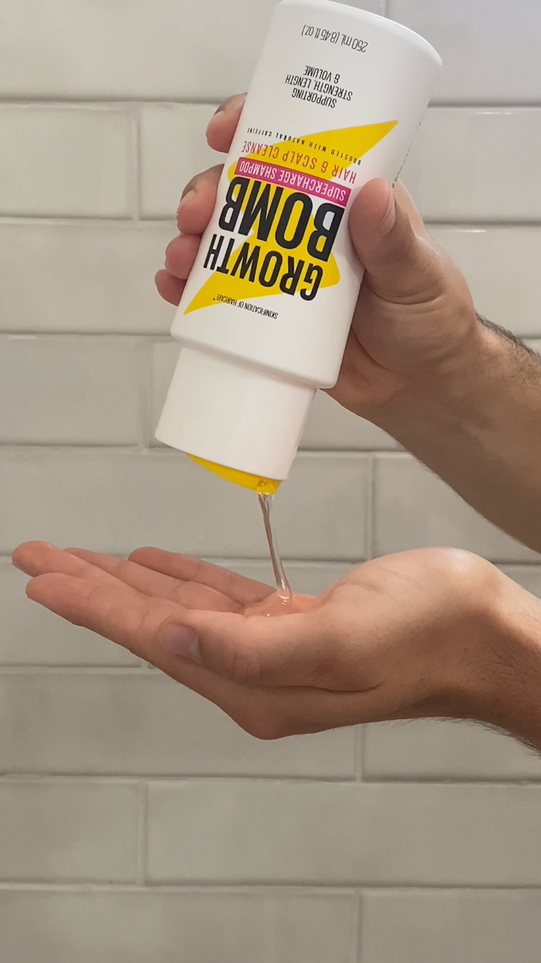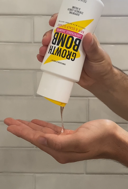 Growth Bomb Supercharge Shampoo is a powerhouse product designed to nurture your scalp and enhance your hair's strength, volume, and overall health.