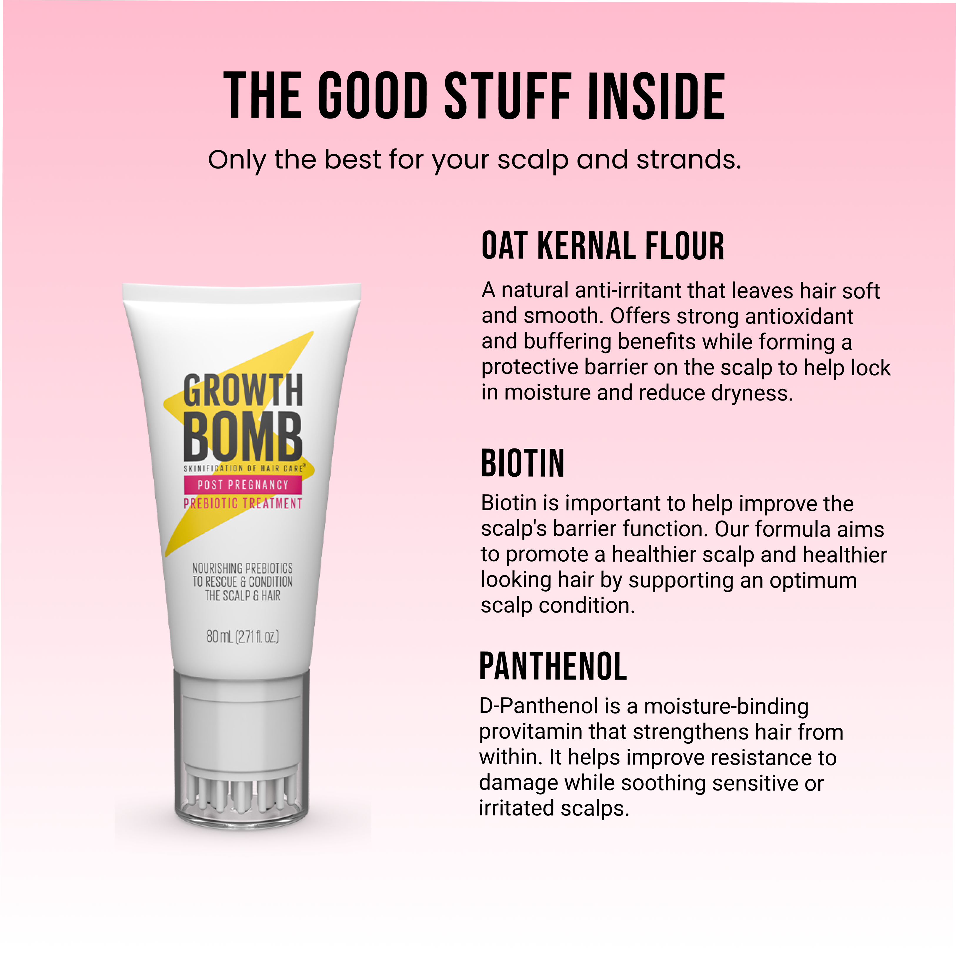 Balance, soothe and restore. This targeted scalp treatment delivers nourishing prebiotics and vitamins to rebalance the scalp microbiome, calm irritation and support healthier, stronger regrowth after pregnancy.