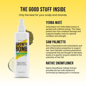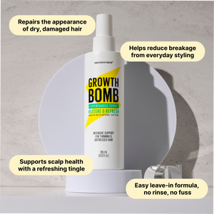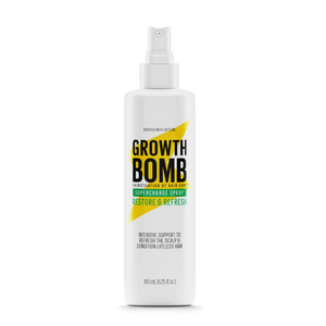 Growth Bomb Supercharge Spray is a revitalising leave-in treatment designed to restore and refresh your hair. Infused with natural caffeine and a blend of potent ingredients, it provides intensive support for thinning and distressed hair.